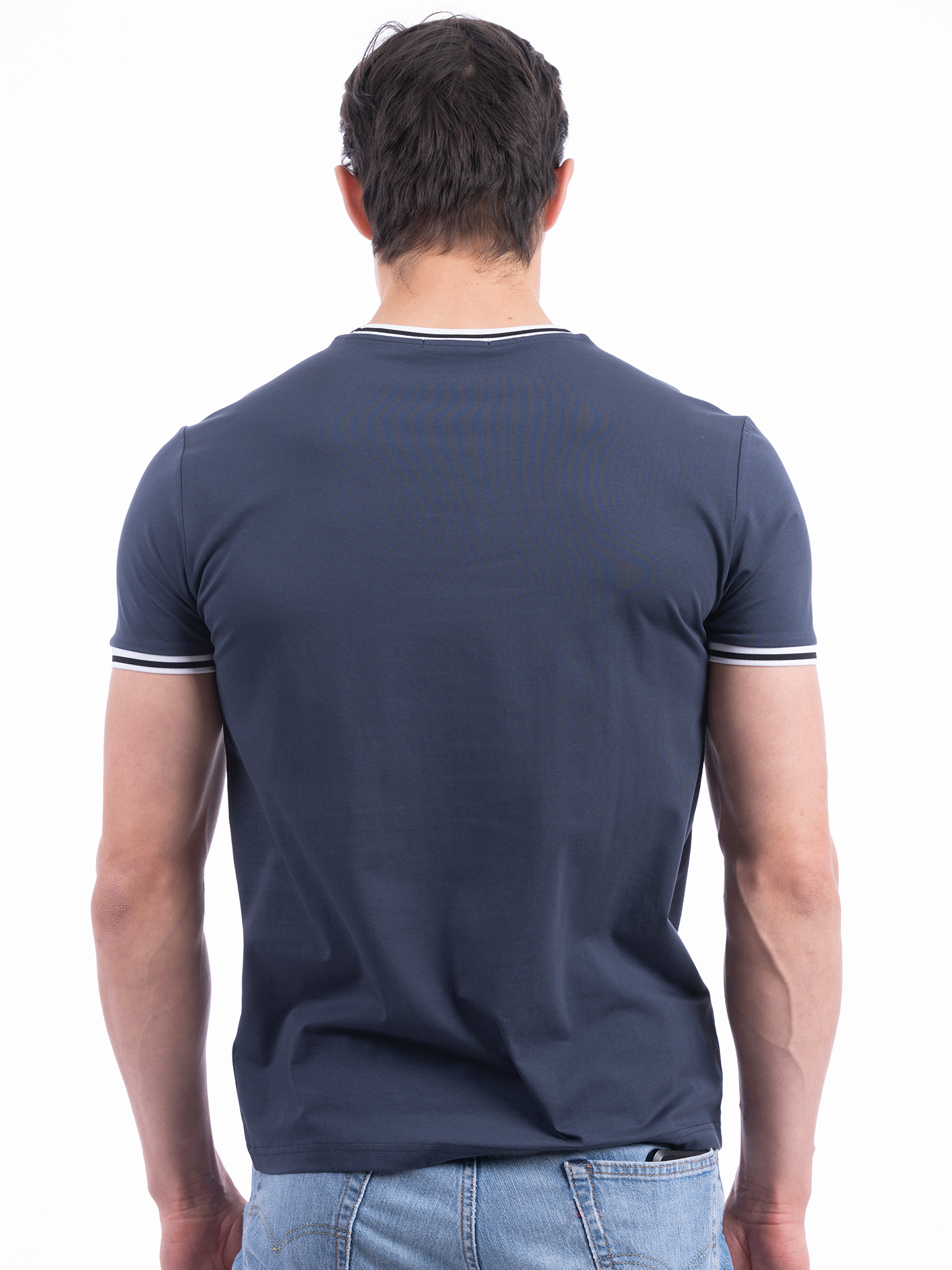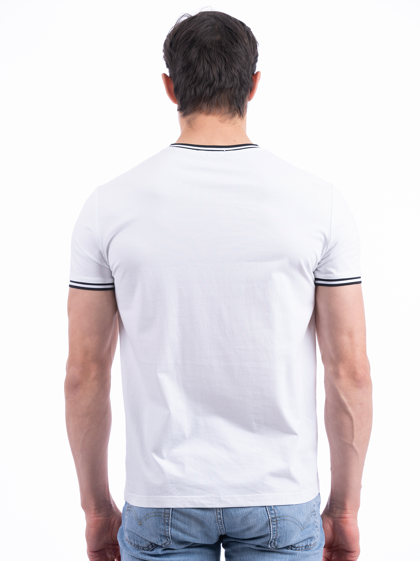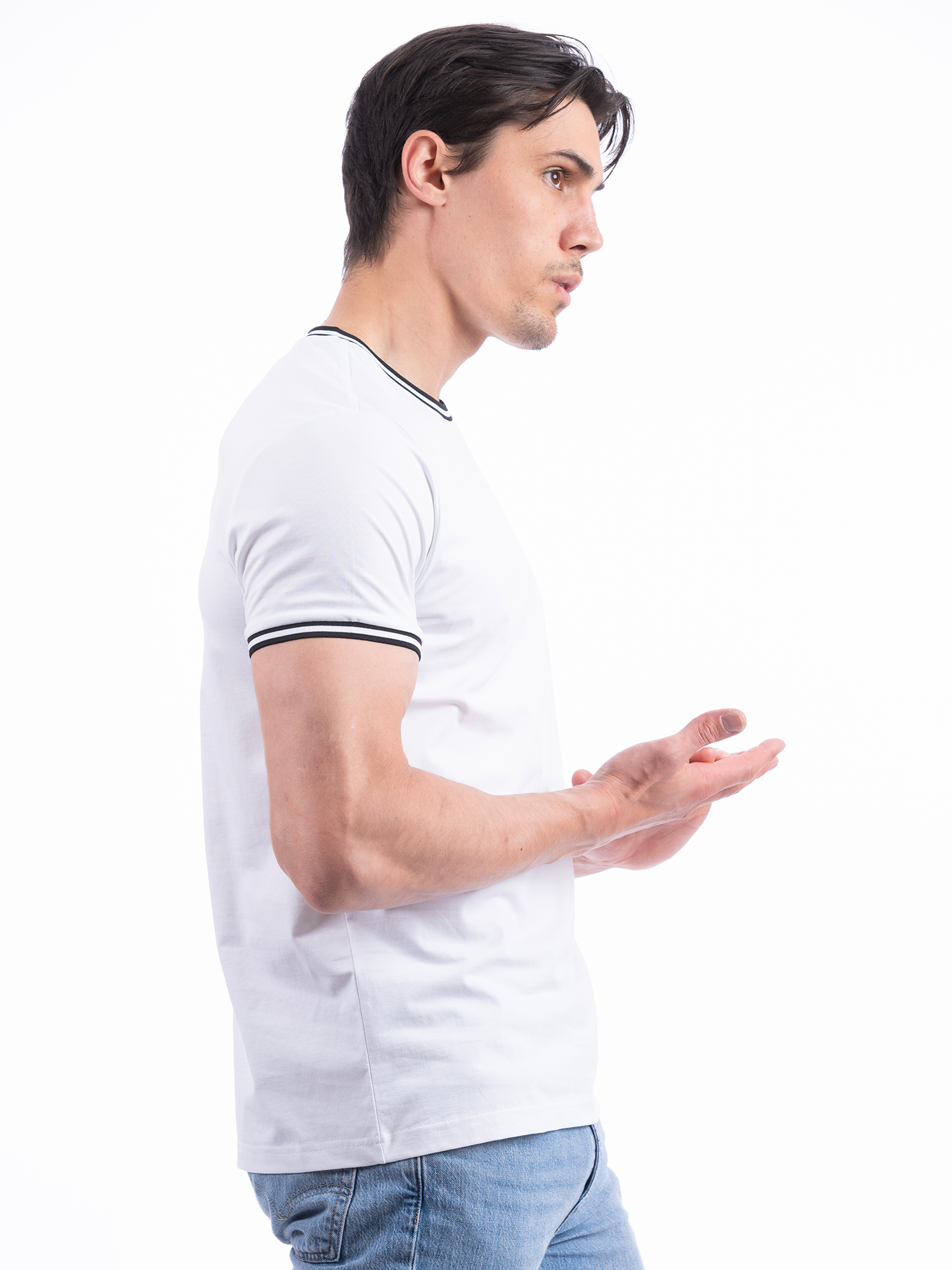 Men’s T-shirt made from soft Lycra jersey with added stretch for comfort. Features contrast stripe detailing on the collar and cuffs, with a dye-to-match ‘D-ROCK’ logo wrapped around the collar.